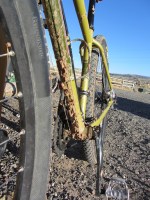 Got tons done around the casa while I waited for the departure time. Lubed up the bikes and pumped fresh air into the tires. Mounted our trusty steers and headed east. No clouds in the sky and wind at our backs. Way out to the horses was downhill all the way. Had to travel slightly beyond the horses to a place where we could cross the river. I was grumpy with myself for not bringing my camera. The last mile was on a muddy dirt road that ran between the river and the badlands. Violet Vixen was out in front and rode right up to the herd of horses. Woulda been a sweet photo.