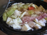 When I moved here, it was blatantly obvious that there was a horrible lack of Irish cheer come this sacred holiday. I vowed to change that as quickly as I could say “cockles and mussels alive alive o”. I treat the day with the dignity and honor and respect that I feel it deserves. First thing in the morning, I move the shamrock plant to center stage on the kitchen table. I bring down the leprechaun snowman that my Aunt Ree gave me when I bought my cabin, and the little shamrock candle holder that my Aunt Nep sent in a housewarming package. I then prepare the green shamrock pancakes and cream my coffee with baileys. Put the corned beef in the dutch ovens and one in the slow-cooker right after breakfast. Although I’ve had to work each St.Patty’s day that I have lived here, I have afternoon pints of Guiness while typing away on my computer. Pandora station fluctuates between a variety of Irish music stations. Prepare the soda bread mid-afternoon. Add the potatoes and carrots to all the corned beefs…and then the cabbage a wee bit later.